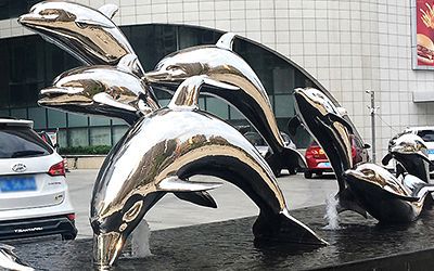 應用于水景之中的不銹鋼雕塑,包括但不限于人物、動物植物、景觀擺件等,常見如貝殼、海螺、海豚、魚、仙鶴、天鵝、青蛙、小鹿、荷花、蓮花、海浪浪花、水滴、假山、鏤空球、圓環等等。